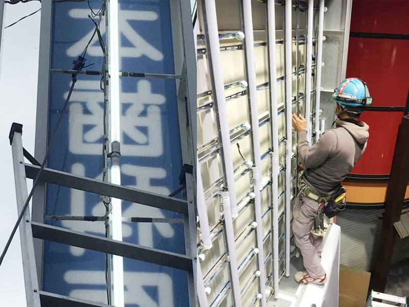 また、屋外看板・サインのメンテナンス、修理、リニューアル、古い看板の撤去など、小さなことから承ります。